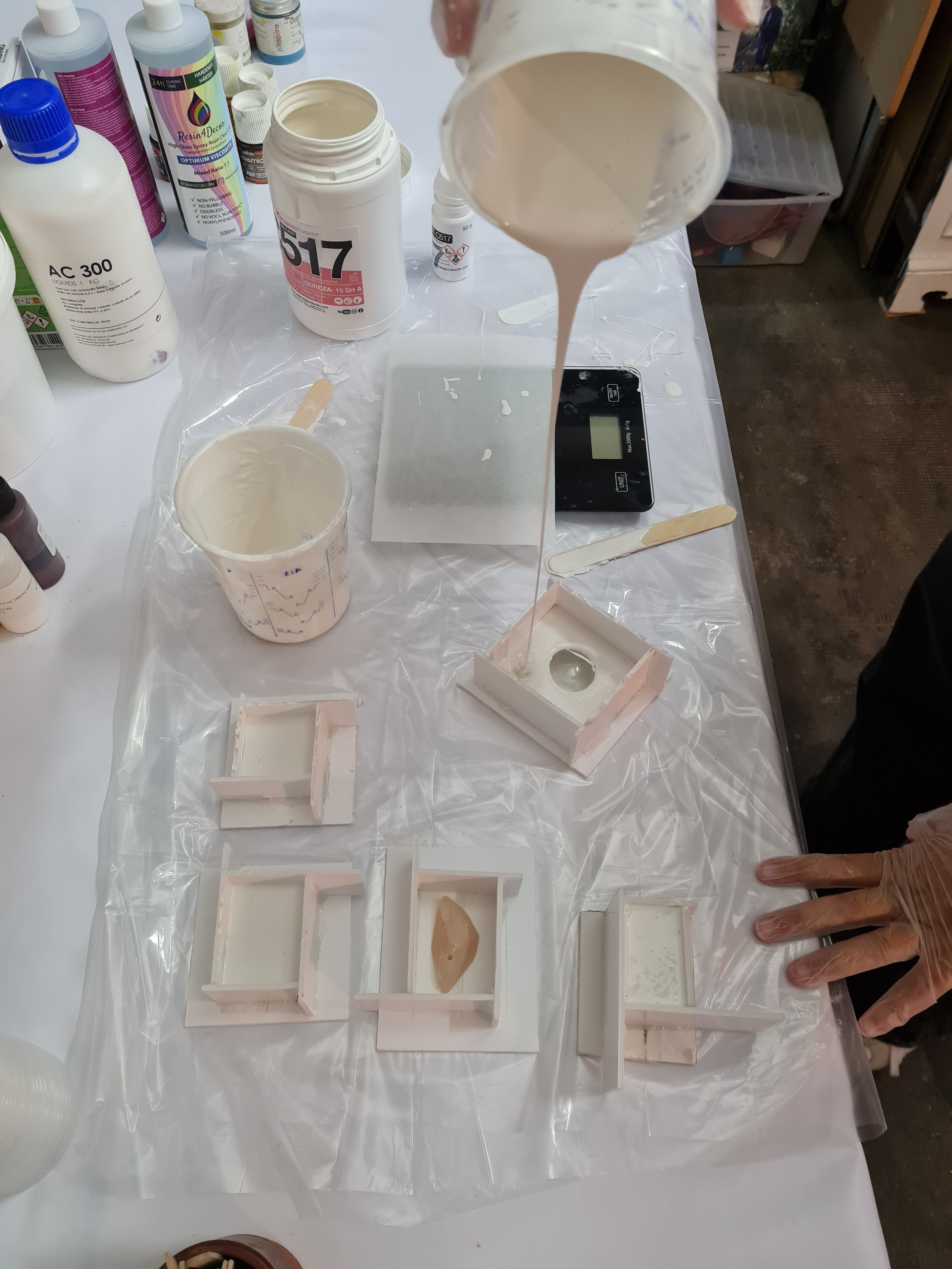 - Pouring the resin into molds and checking the final result